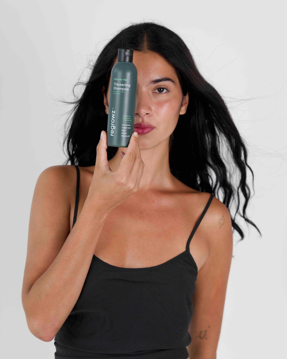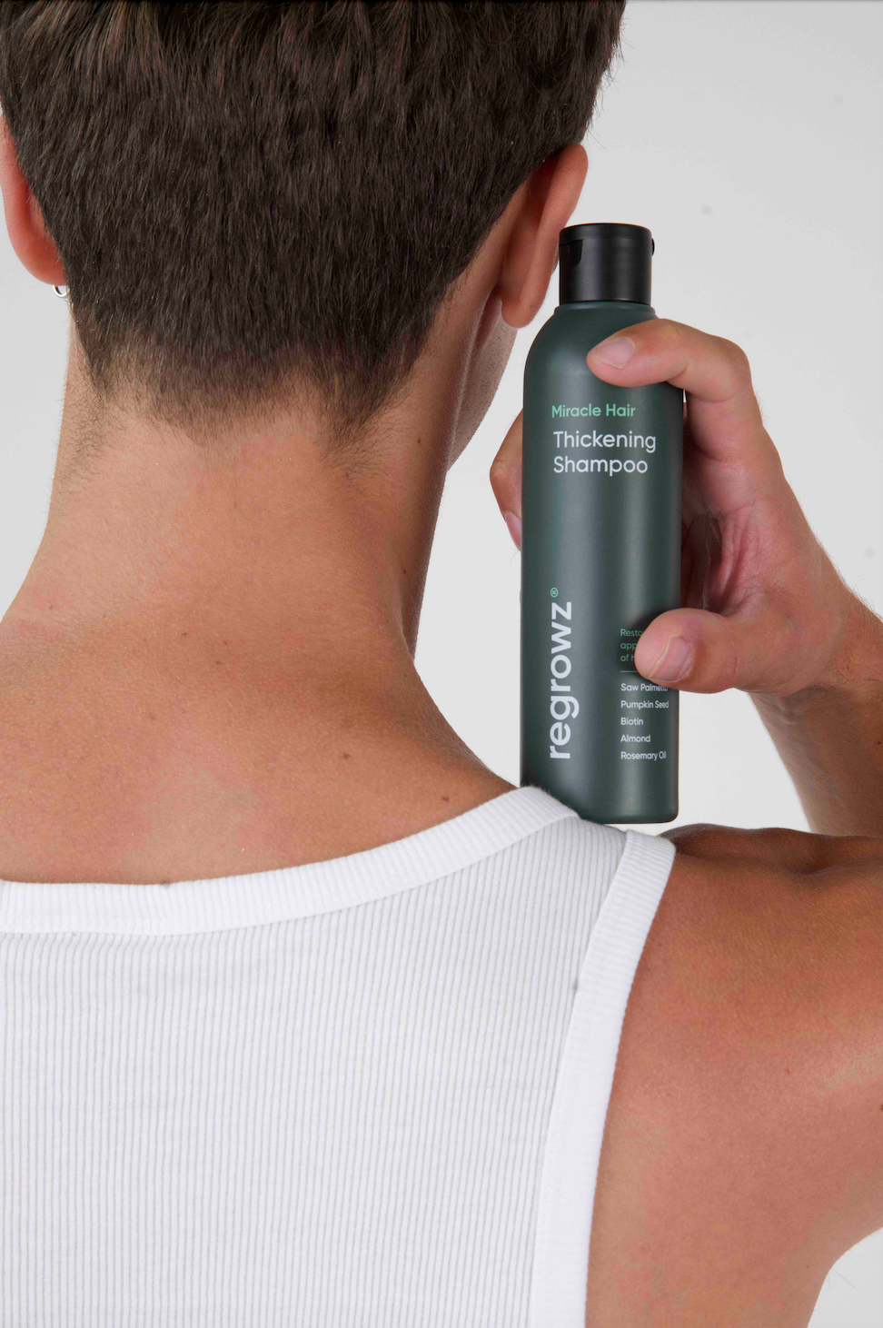 Our Thickening Shampoo will help your hairline look noticeably thicker.